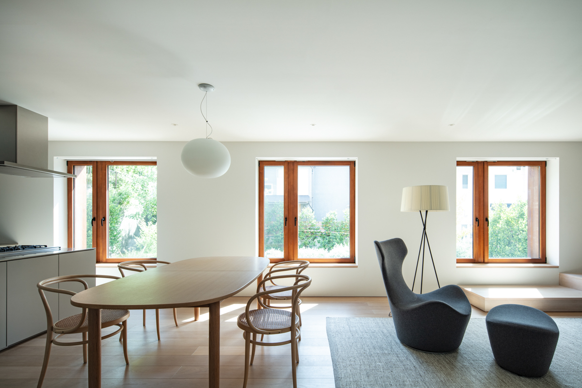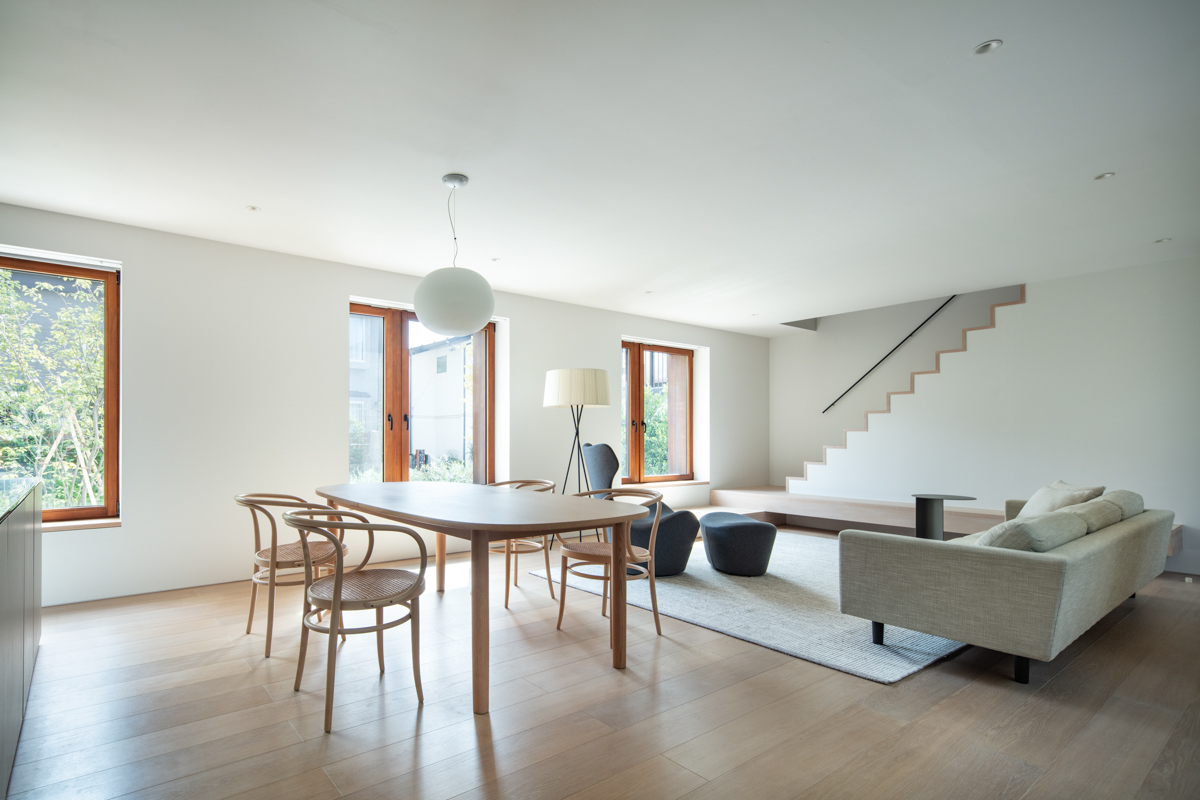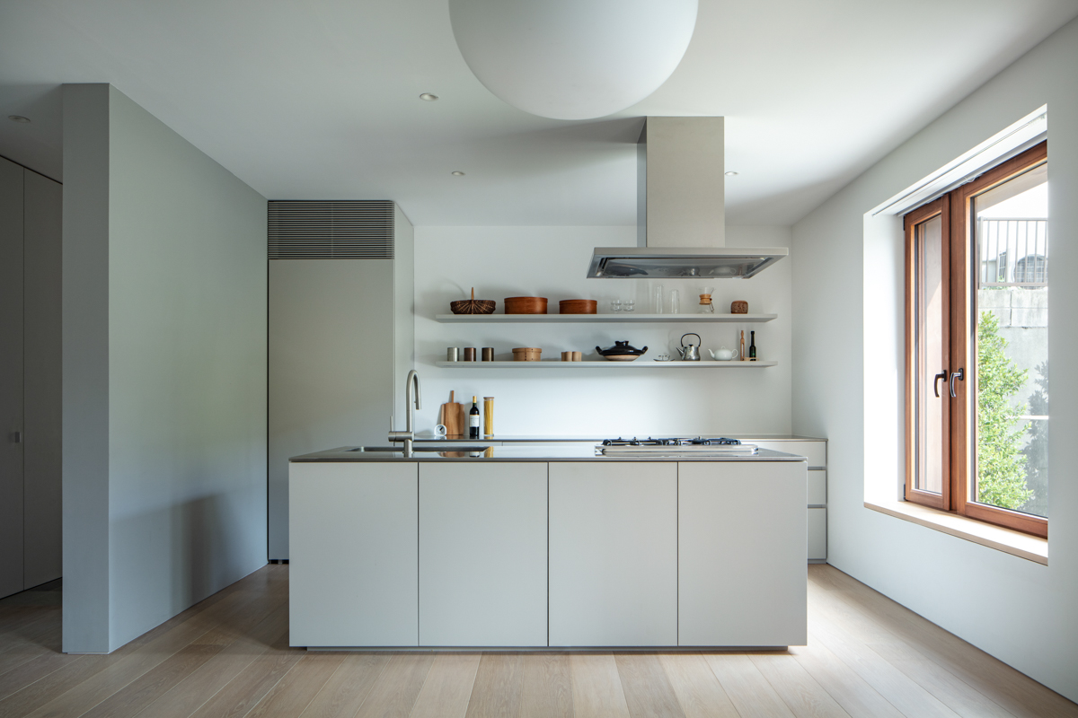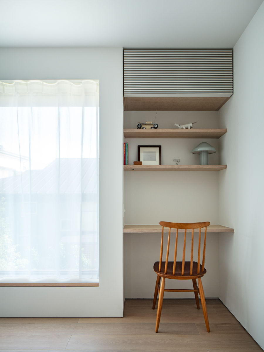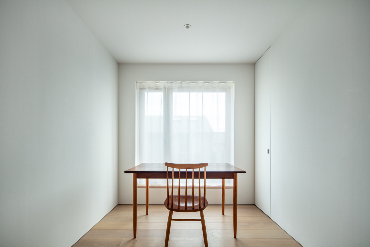家らしい家を作る。プロダクトデザイナーの深澤直人氏の一声で始まったプロジェクトです。建物を構成する要素は沢山ありますが、白い壁に六つの窓と寄棟の屋根。キーワードはこの3つでした。この3つを最大限に強調できるよう全てのディティールを静かに作ることに注力しました。トラッドに見える外観かと思いきや、全てを洗練しつくり上げることができたと考えています。生活の背景となる建物は可能な限り静かに。私たちがいつも大事に思っていることを体現できた作品だと考えています。